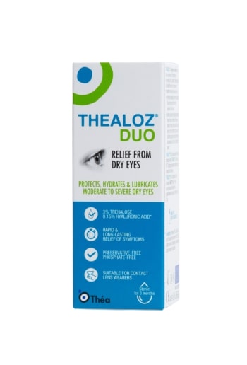 THEALOZ DUO is a revolutionary eye drop solution designed to provide immediate and long-lasting relief for people suffering from dry eyes, chronic dryness or occasional discomfort.