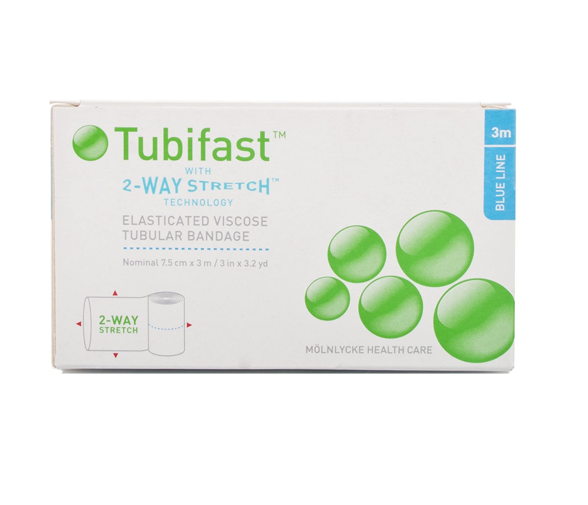 Tubifast 2-Way Stretch Blue Line Bandage is ideal for dressing retention and skin covering for any part of the body. It can also be used for a patch and as an undercast stockinette and can be used on minor wounds.