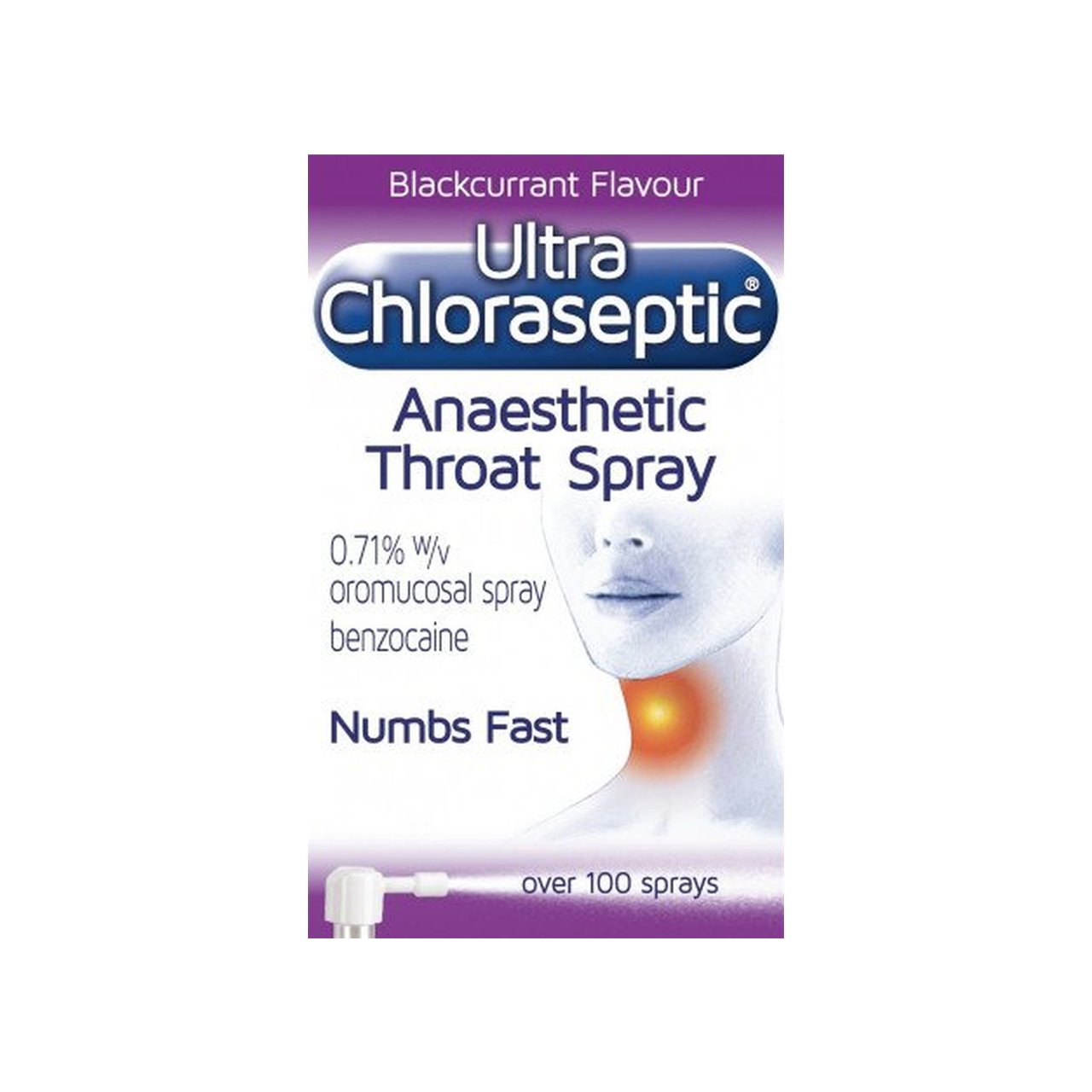 Ultra Chloraseptic Blackcurrant Throat Spray has been formulated to relieve sore throat pain. It contains a fast-acting local anaesthetic, which provides targeted relief straight to the site of pain, to numb sore throats fast
